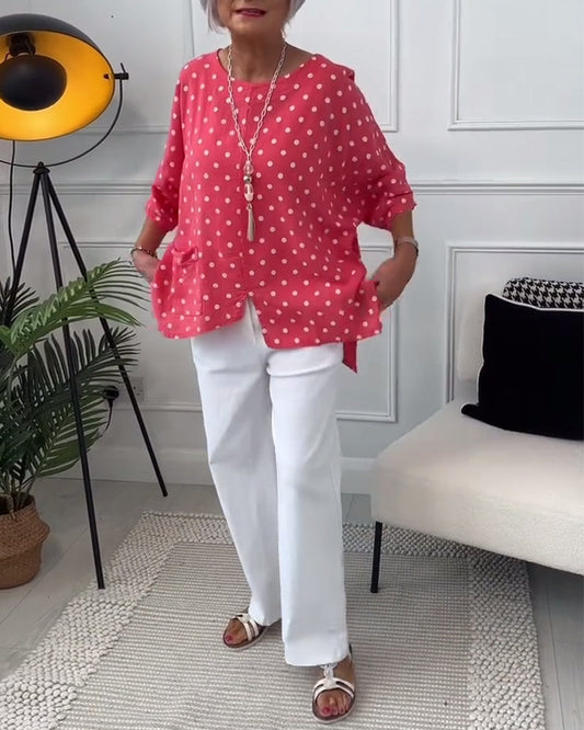 Uformell løs bluse med splitt med prikker