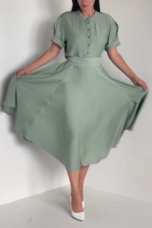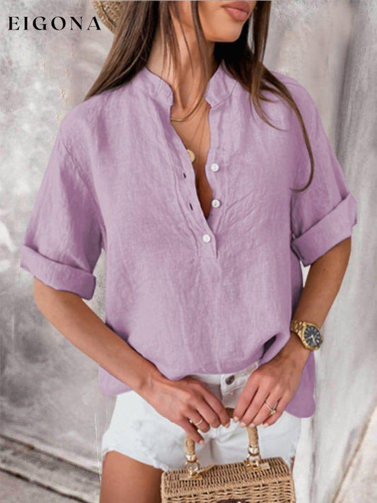 Dame ensfarget Langermet knapp Stående Krage Basic Topper