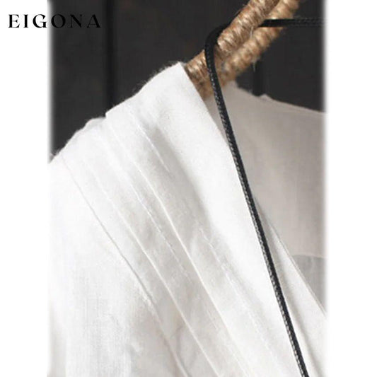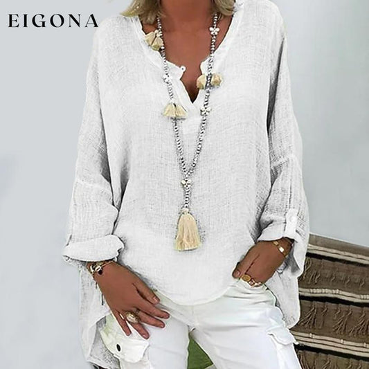 Ensfarget langermet knapp V-hals Basic Topp for kvinner