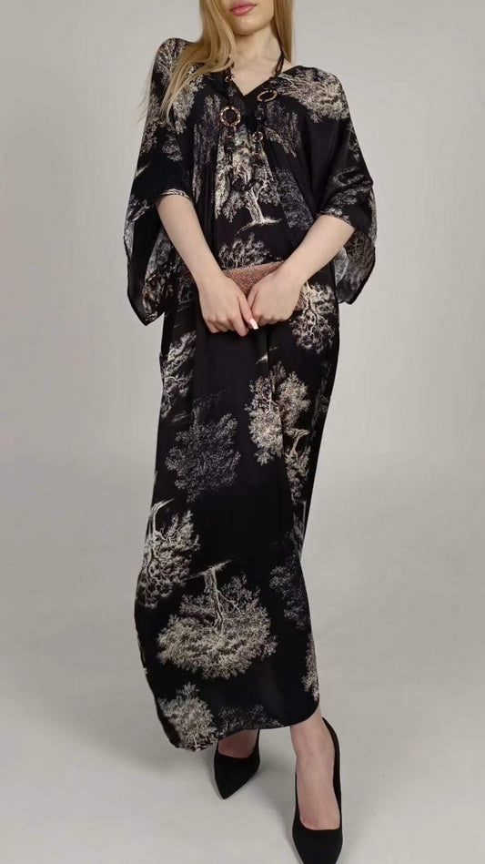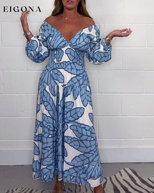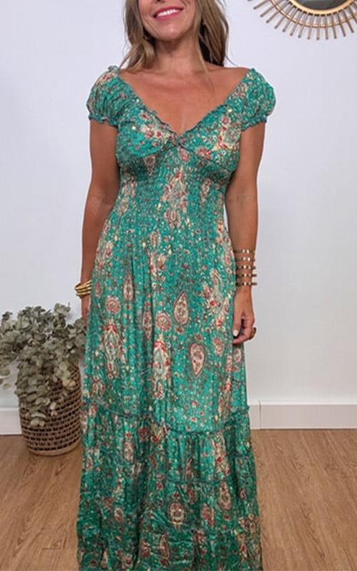 Lang kjole med V-hals trykt midje for kvinner