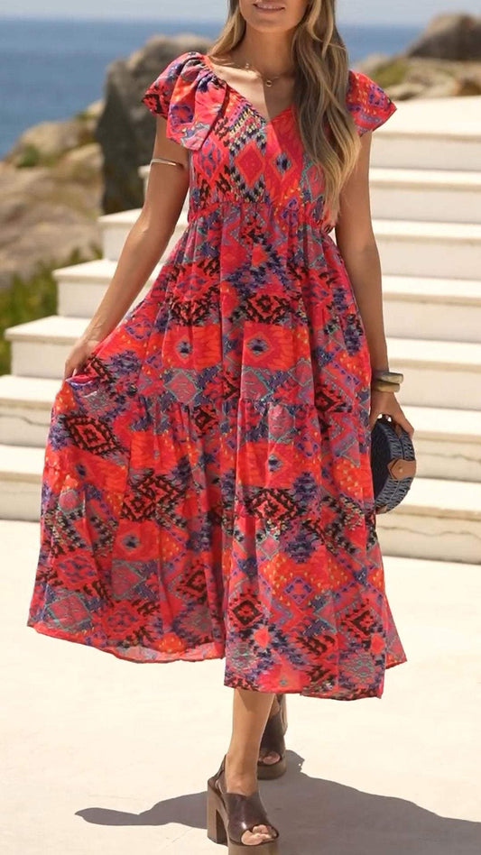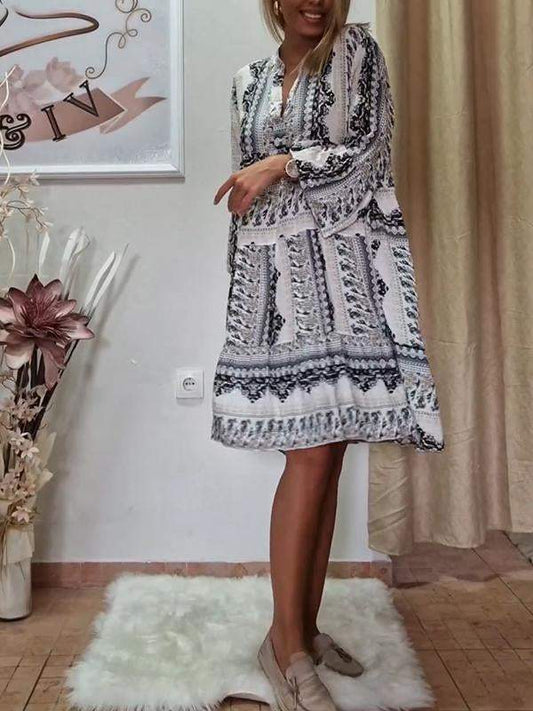 Kvinners V-hals Mid-Sleeve Printed Casual Dress