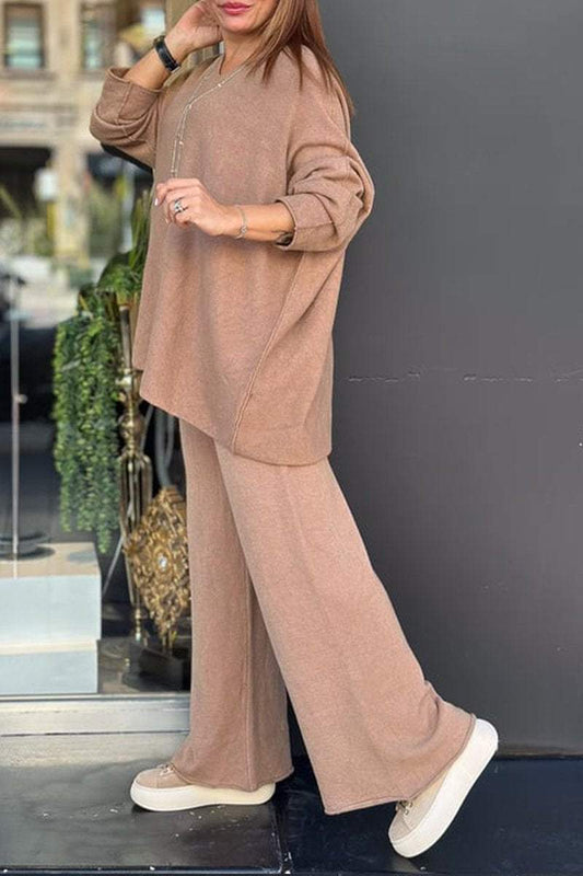 Schlichter langärmliger Zweiteiler mit V-Ausschnitt für Damen