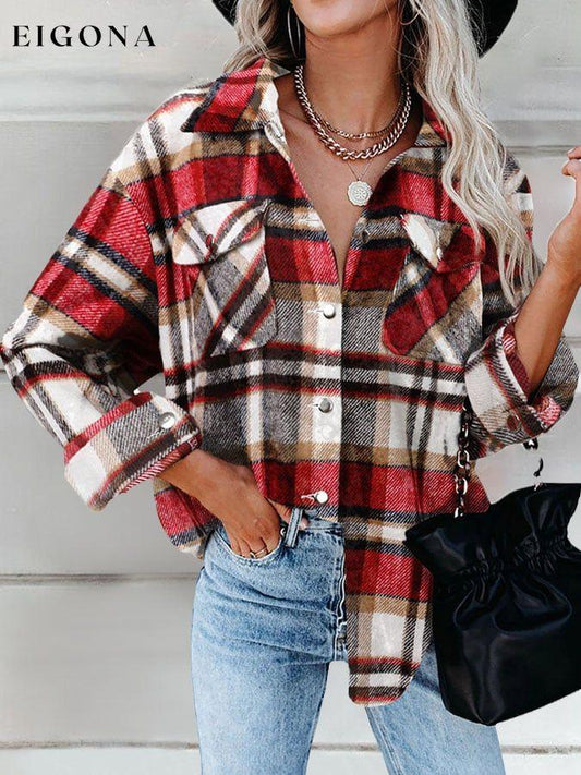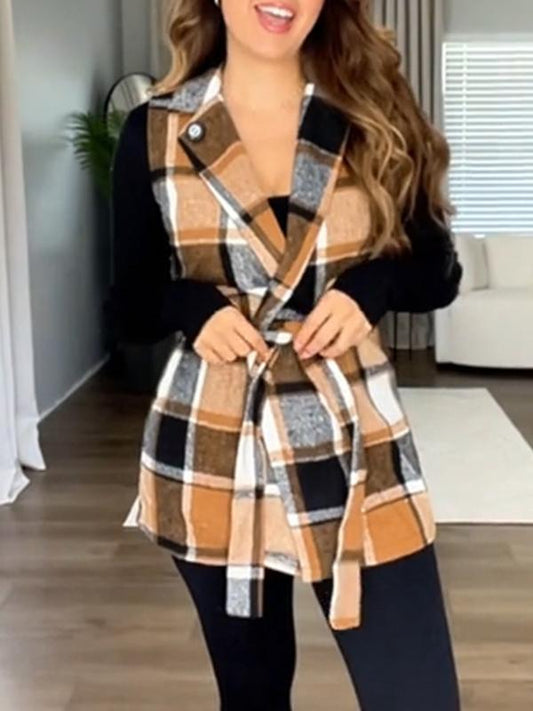 Vintage etnisk ullskjorte for kvinner Langermet rutete jakke