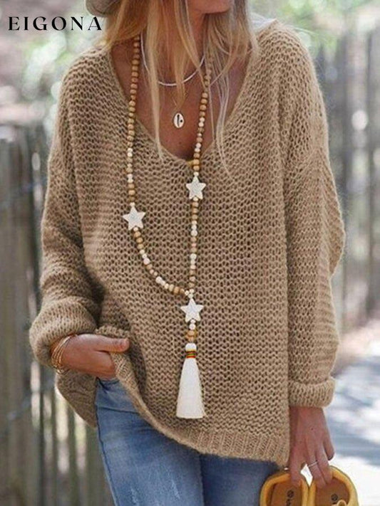 Kvinners vintage etnisk geometri print V-hals langermet T-skjorte