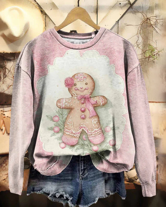 Lässiges Sweatshirt mit Vintage-Weihnachtsplätzchen-Aufdruck für Damen