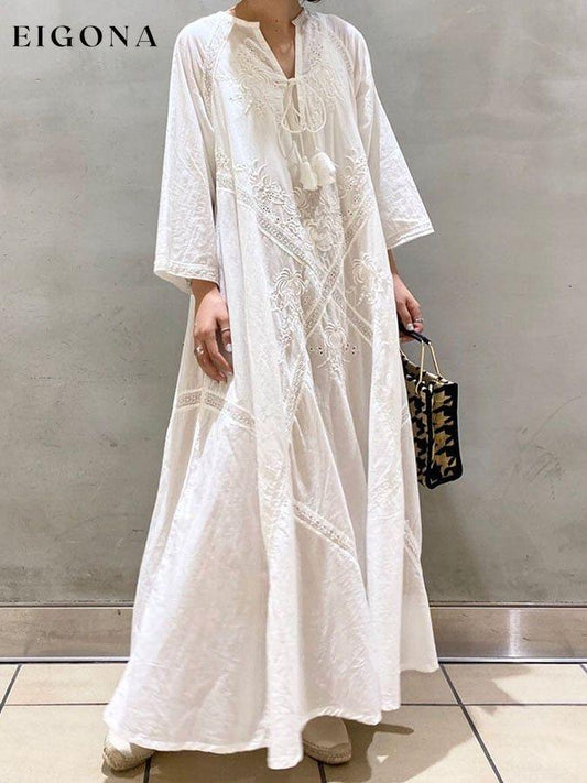 Vintage brodert uformelt løs lang kjole for kvinner