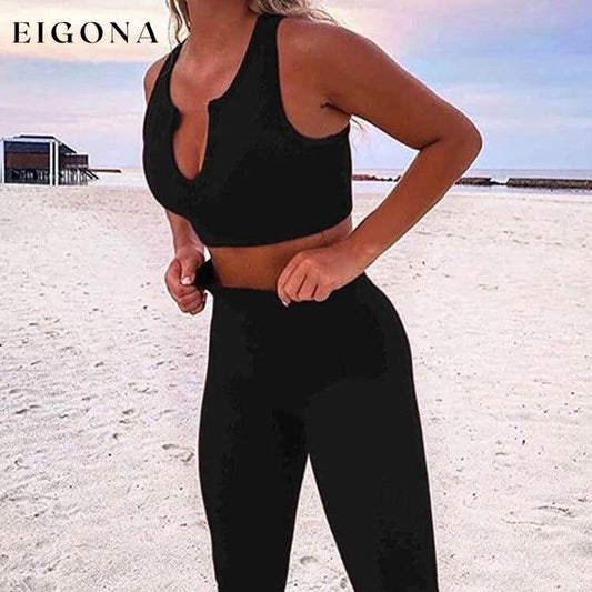 2-delt sett: Ribbete sømløse leggings med høy midje yoga