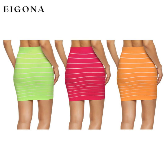 3-pakke: Stripete, sømløse mikrofiber, slanke miniskjørt i nylon med påtrekkbar lukking