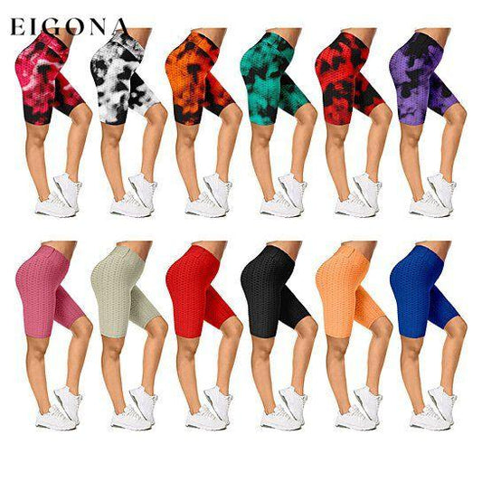 2-Pack: Høy midje trening for kvinner Yoga sidelomme kompresjonssykkelshorts