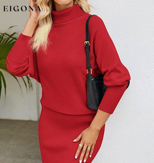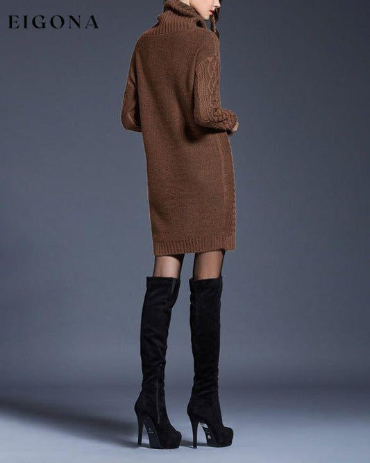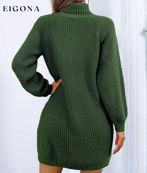 Turtleneck Langermet Dropped Shoulder Sweater Dress