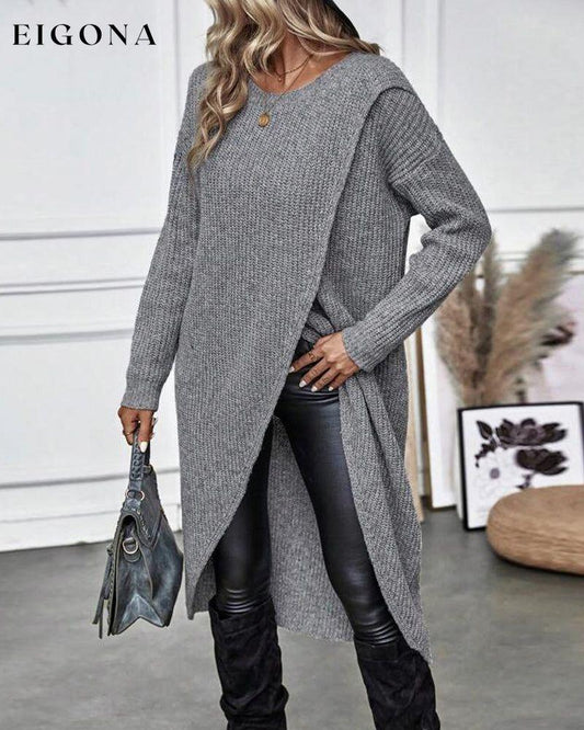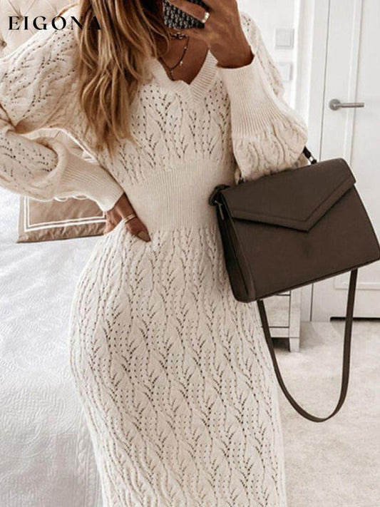 Langermet V-hals, hoftenær genserkjole for kvinner