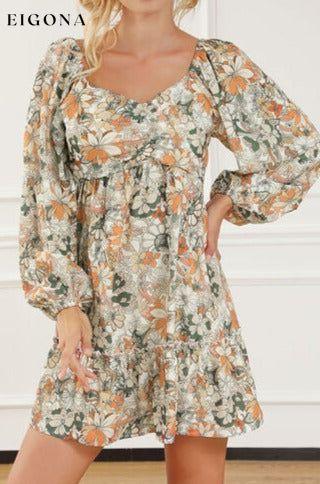 Trykt ballongermet volangsøm minikjole, langermet kjole