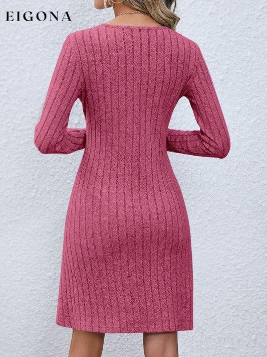 Ribbet på kryss og tvers med rund hals og langermet Midi Bodycon-kjole