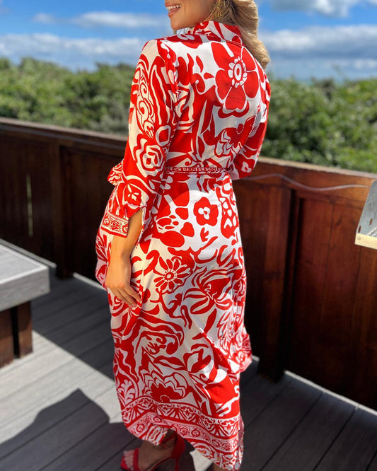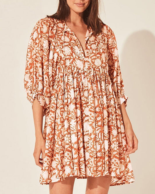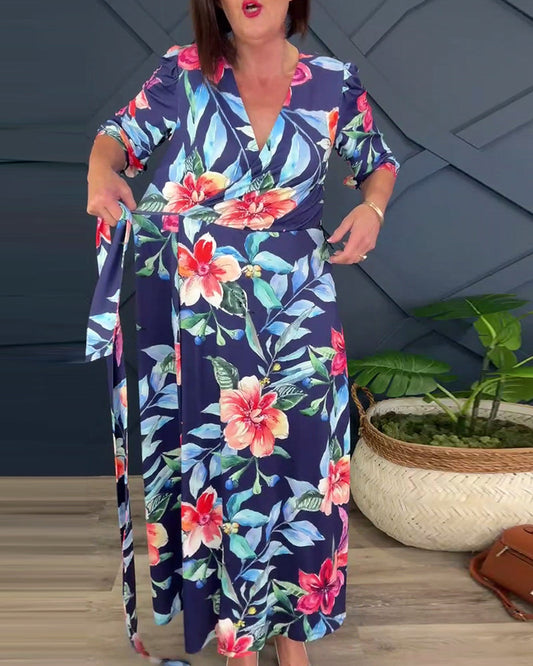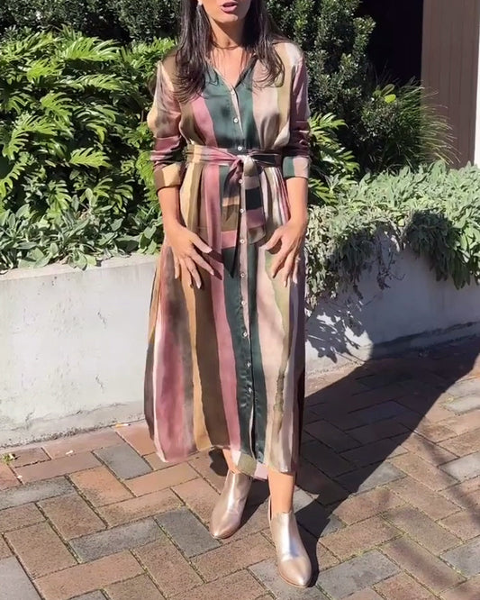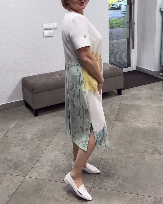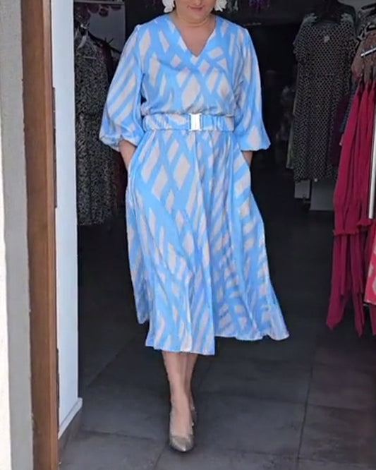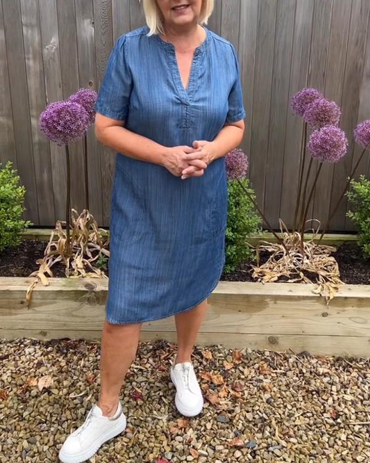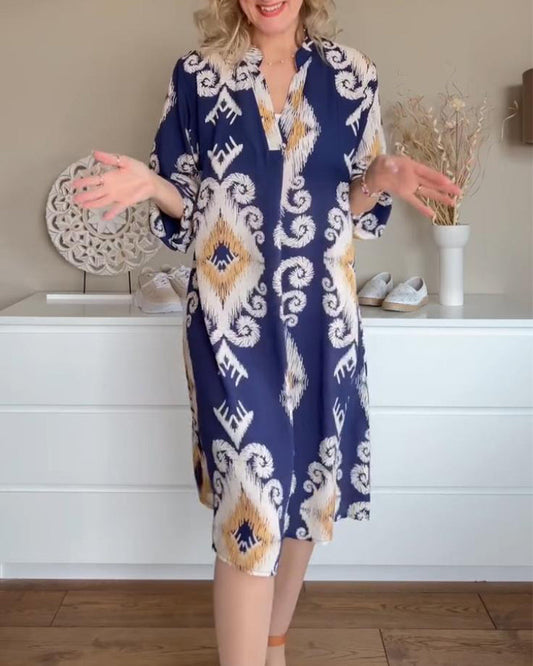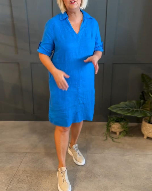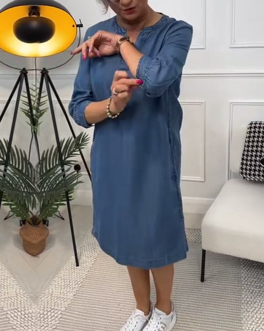 Uformell ensfarget jakkeslagskjole med trekvart ermer