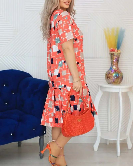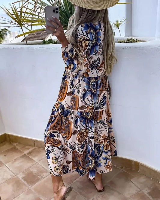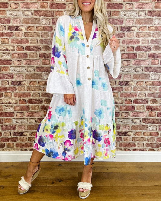 Fargerik klokkeermet uformell kjole med blomstertrykk