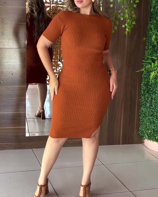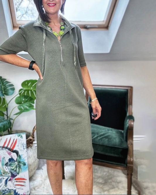 Enkel ensfarget fritidskjole med snøring og glidelås