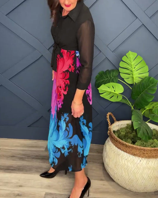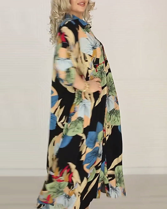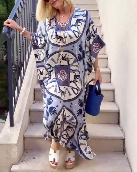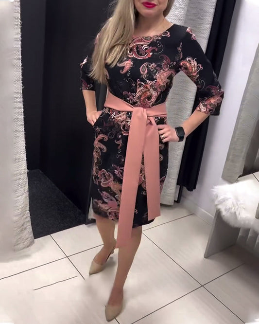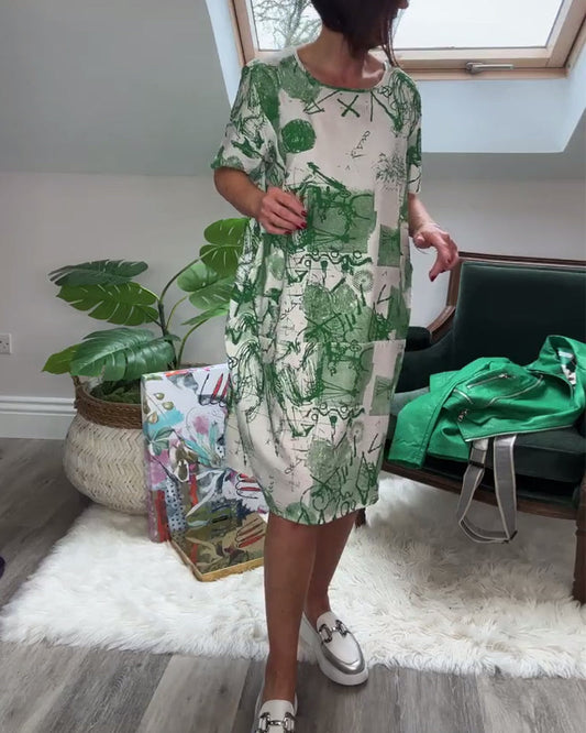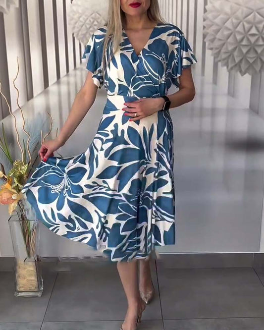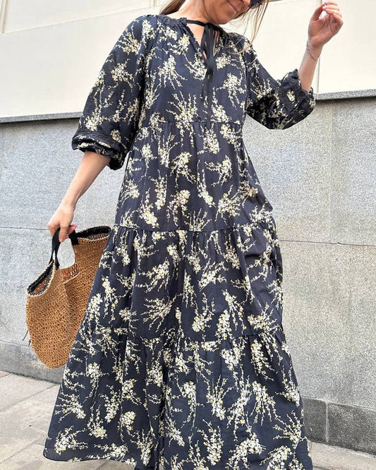 Uformell kjole med lanterne med firkantet hals med bladtrykk