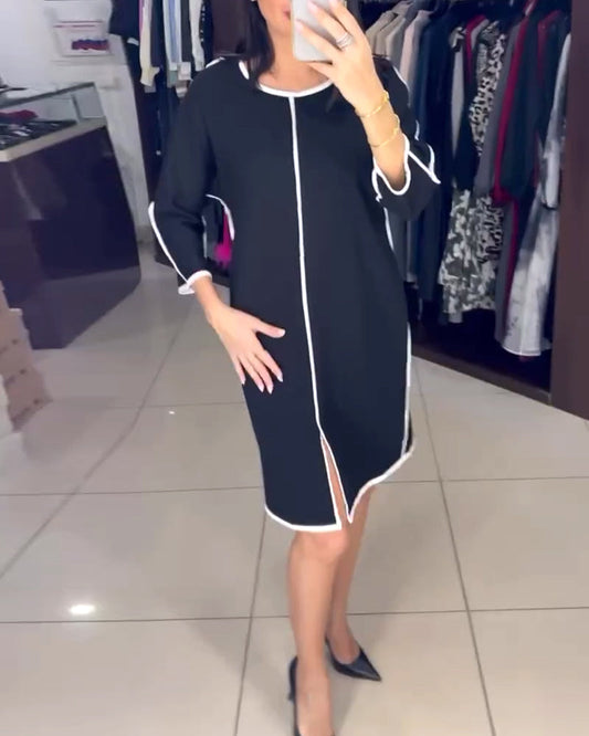 Lockeres schwarz-weißes Etuikleid mit Kontrast