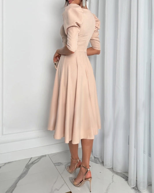 Kleid mit V-Ausschnitt und Laternenärmeln
