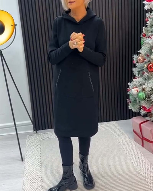 Einfarbiges Slim-Fit-Kleid mit Kapuze und Tasche
