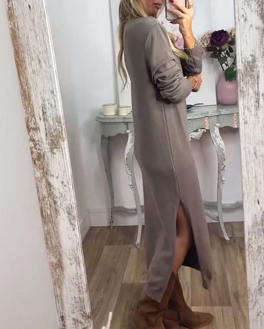 Lässiges Pulloverkleid mit V-Ausschnitt und Schlitz