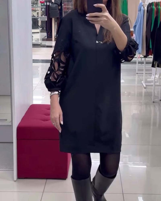 Modisches Kleid mit V-Ausschnitt und Netznähten