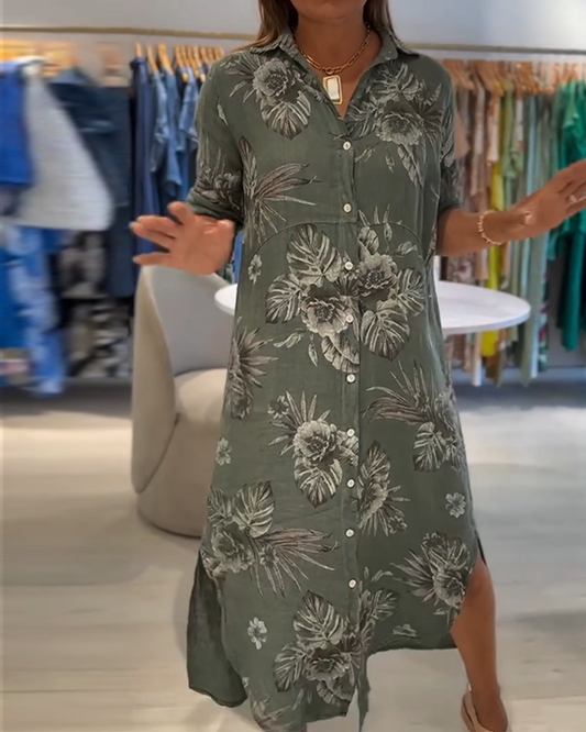 Langärmliges Kleid mit bedrucktem Hemdkragen
