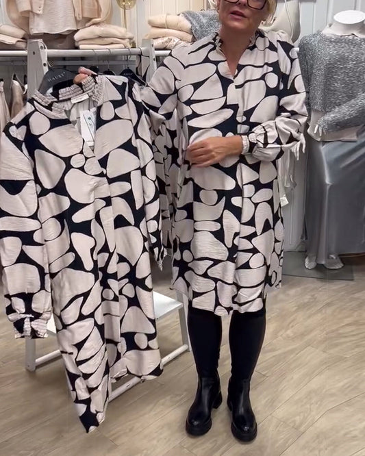 Lässiges bedrucktes A-Linien-Langarmkleid