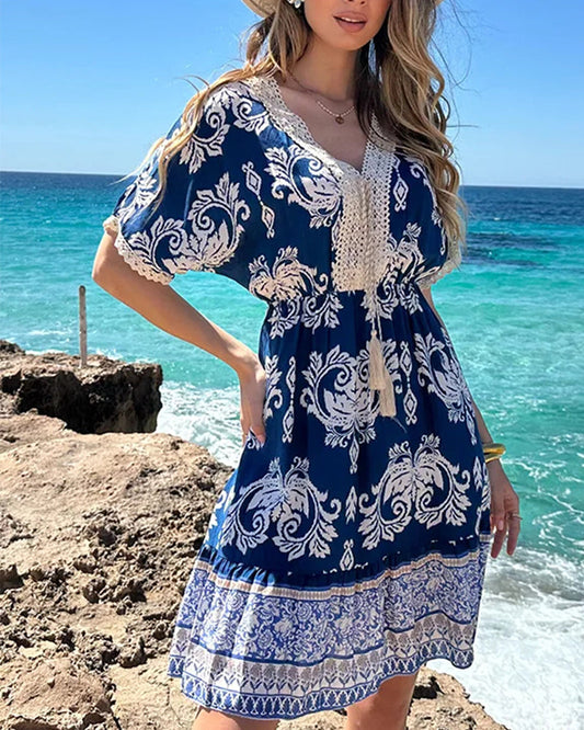 Lässiges bedrucktes Kleid mit V-Ausschnitt
