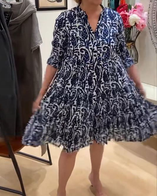 Lockeres, bedrucktes Festtagskleid mit Glockenärmeln