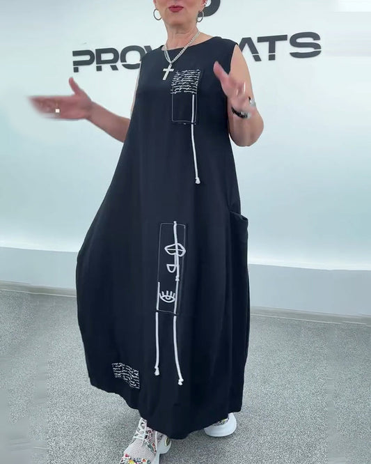 Ärmelloses Oversize-Kleid mit Buchstaben-Print