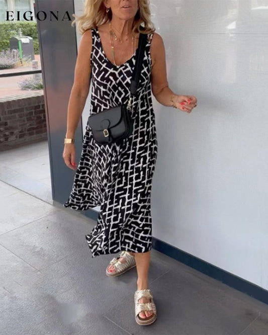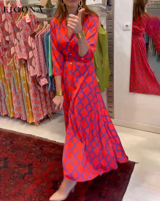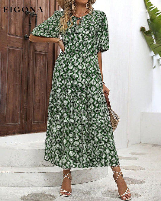 Lang kjole med vintage geometrisk trykk