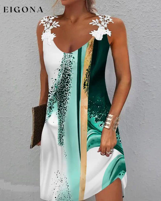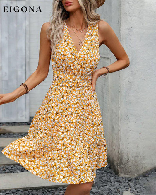 V-hals ermeløs kjole med blomstertrykk