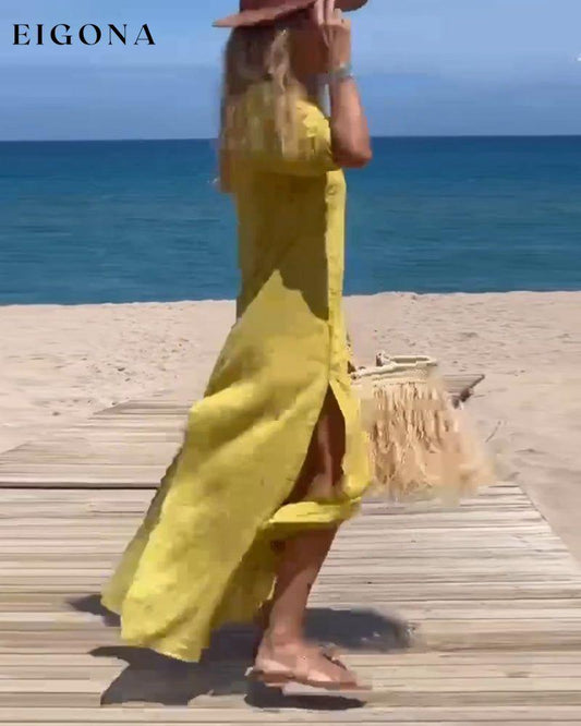 Ensfarget fritidskjole med splitt