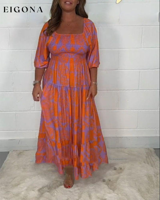Halv-ermet kjole med firkantet hals