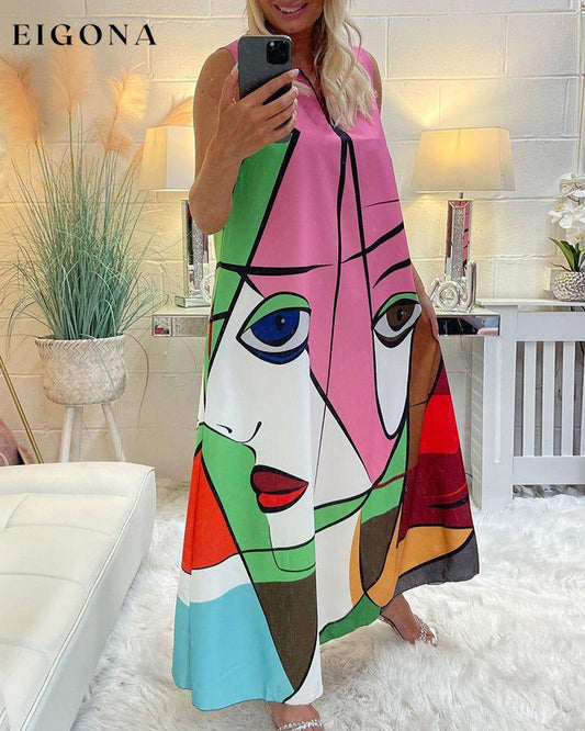 Ermeløs kjole med ansiktstrykk