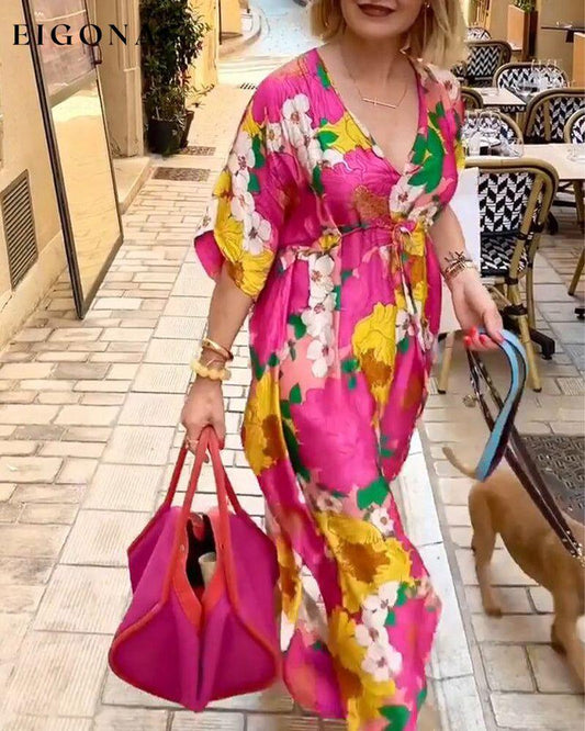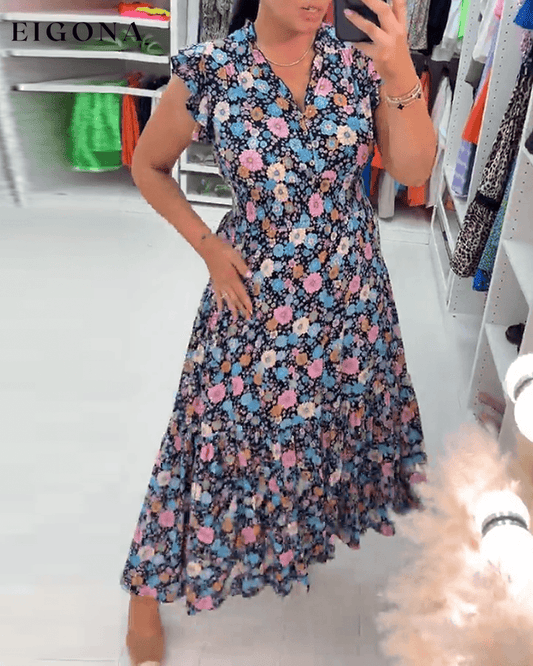 V-hals avslappet kjole med blomstertrykk