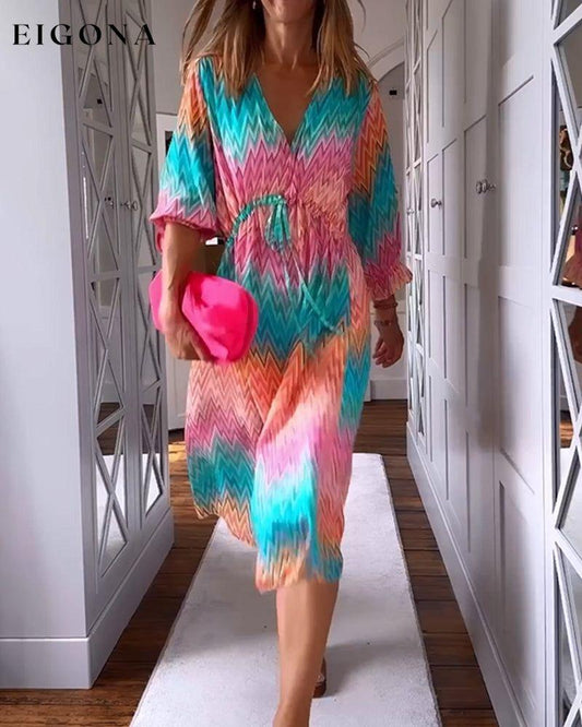 V-hals kjole med fargeblokktrykk