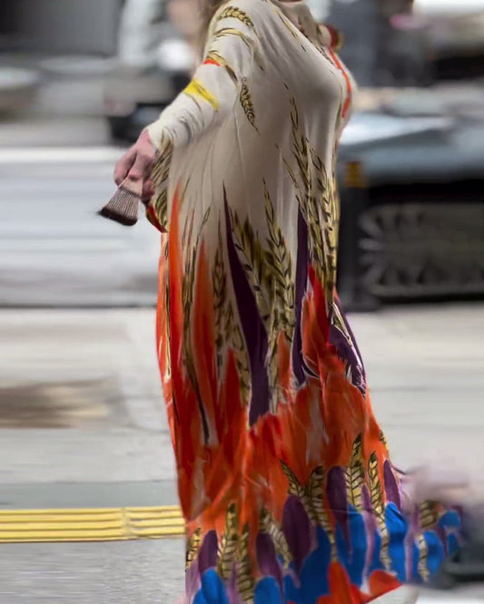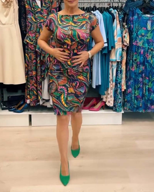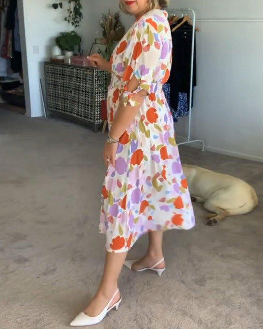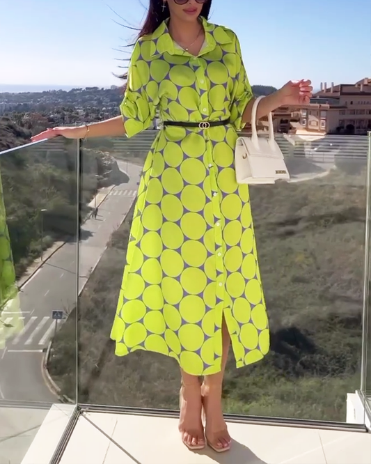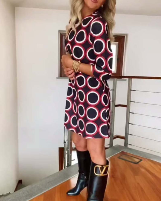 Trekvart kjole med jakkeslag med sirkeltrykk og knapp