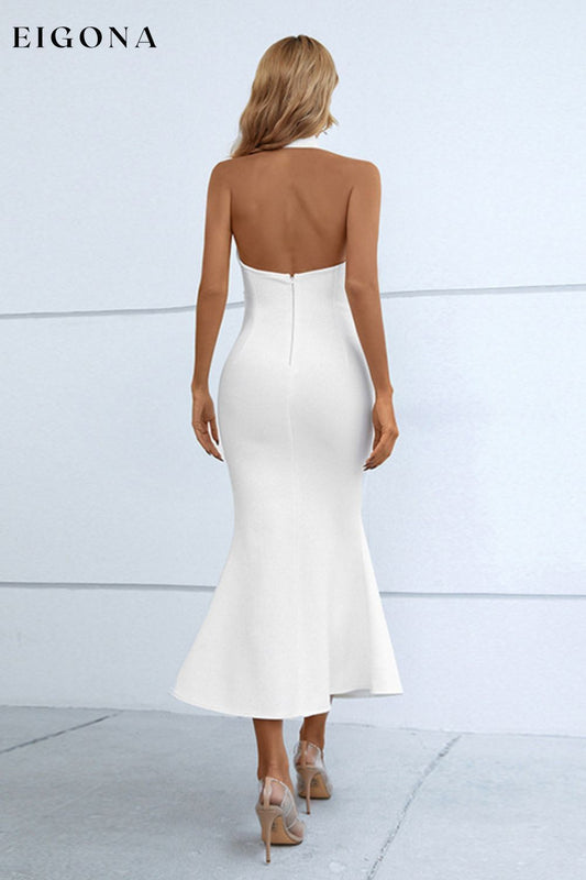 Halter Neck Split Fishtail Bodycon Cutout Midi-kjole