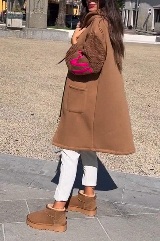 Damen Kapuzenjacke mit langen Ärmeln und Strickärmeln, Patchwork, Freizeitjacke