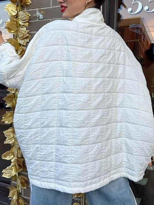 Mehrfarbige, einfarbige Steppjacke für den Winter mit Kapuze für Damen