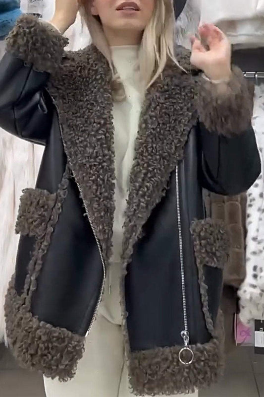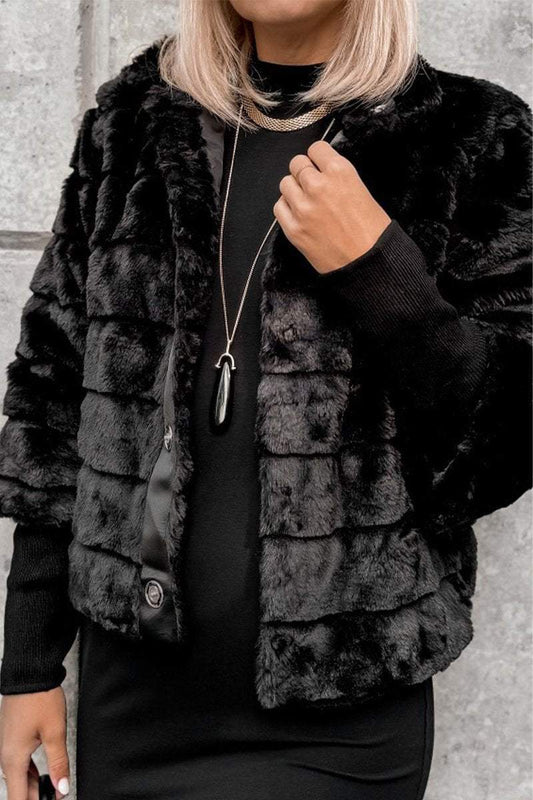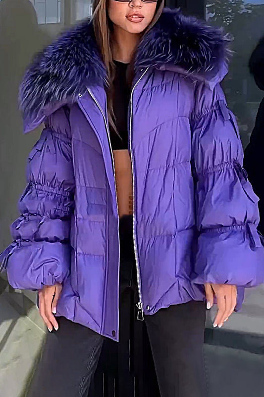 Damen Wintermantel mit Kapuze und einfarbigem, warmem Pelz und Reißverschluss