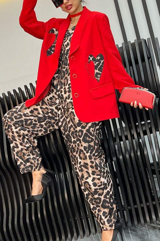 Einfarbige Anzugjacke mit Leopardenmuster für Damen im Frühling/Herbst
