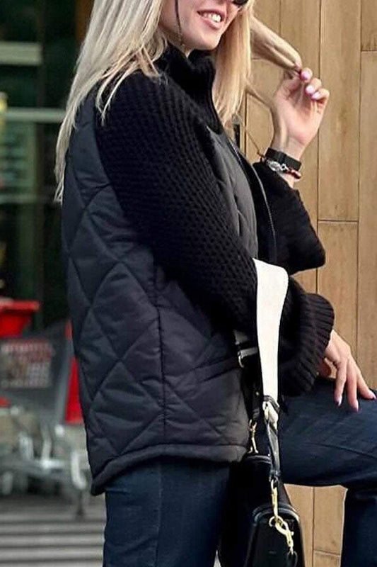 Gestrickte Patchwork-Freizeitjacke in Volltonfarbe