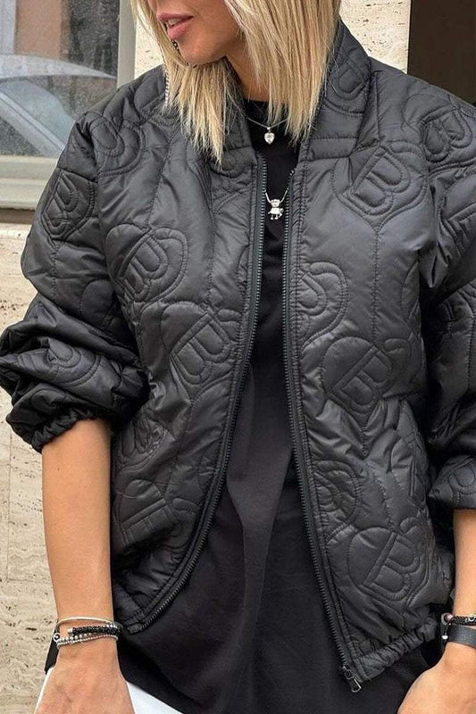Einfarbige, lässige Jacke mit Reißverschluss und langen Ärmeln