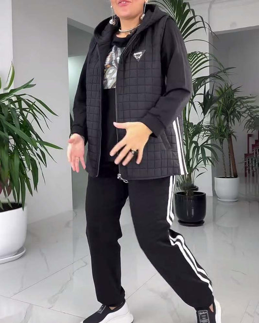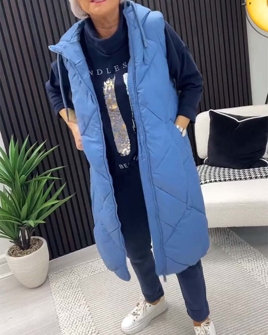 Mehrfarbiger Thermo-Westenmantel mit Reißverschluss und Kapuze für den Winter für Damen