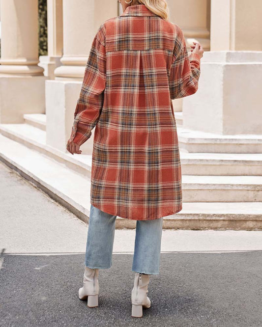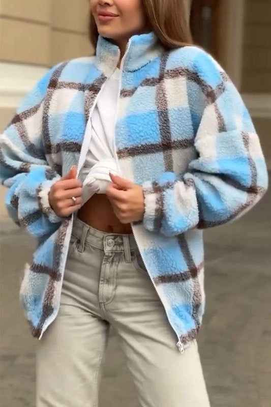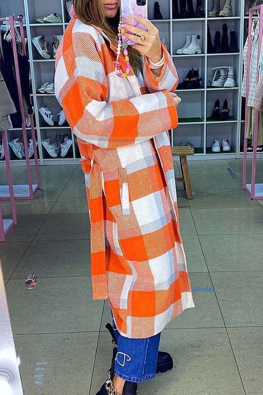 Lässiger Baumwollmantel mit Kapuze und langen Ärmeln und Rautenmuster für Damen
