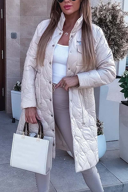 Modischer mittellanger Baumwollmantel für Damen mit Taillenkordelzug und Stehkragen