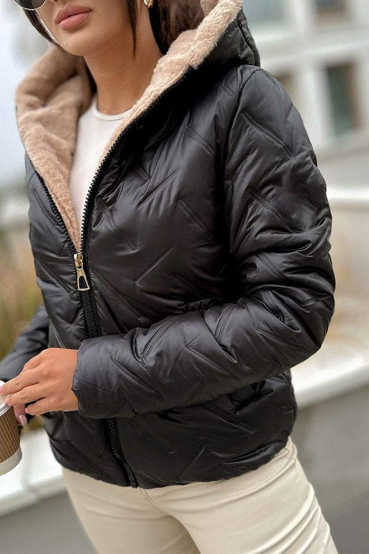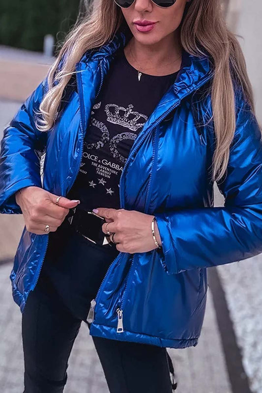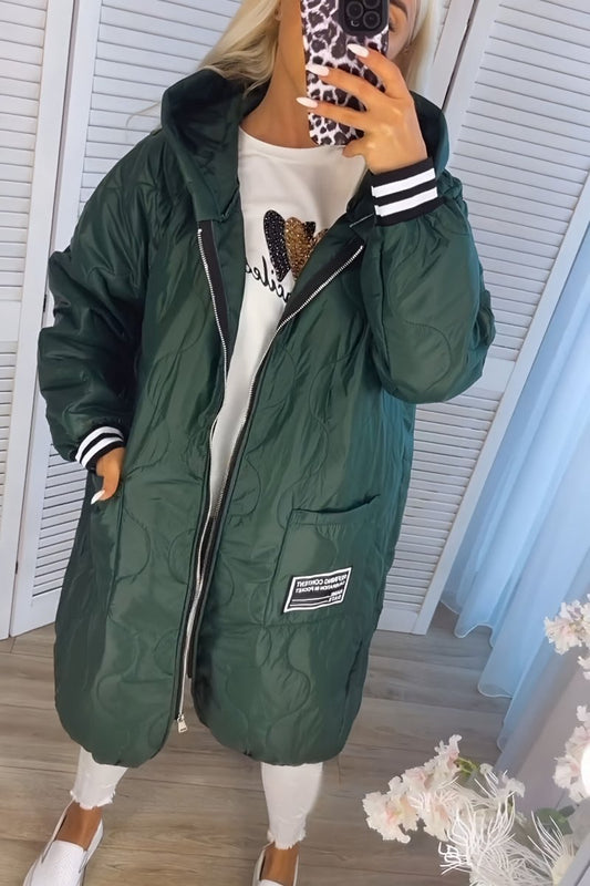 Lässige, dicke Jacke mit Kapuze und Reißverschluss für Damen